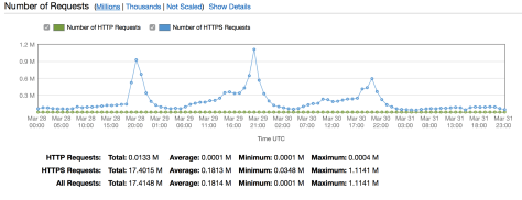 The first night of the BBC show we peaked at about 0.9 million requests per hour, with 1.1 million per hour the second night.